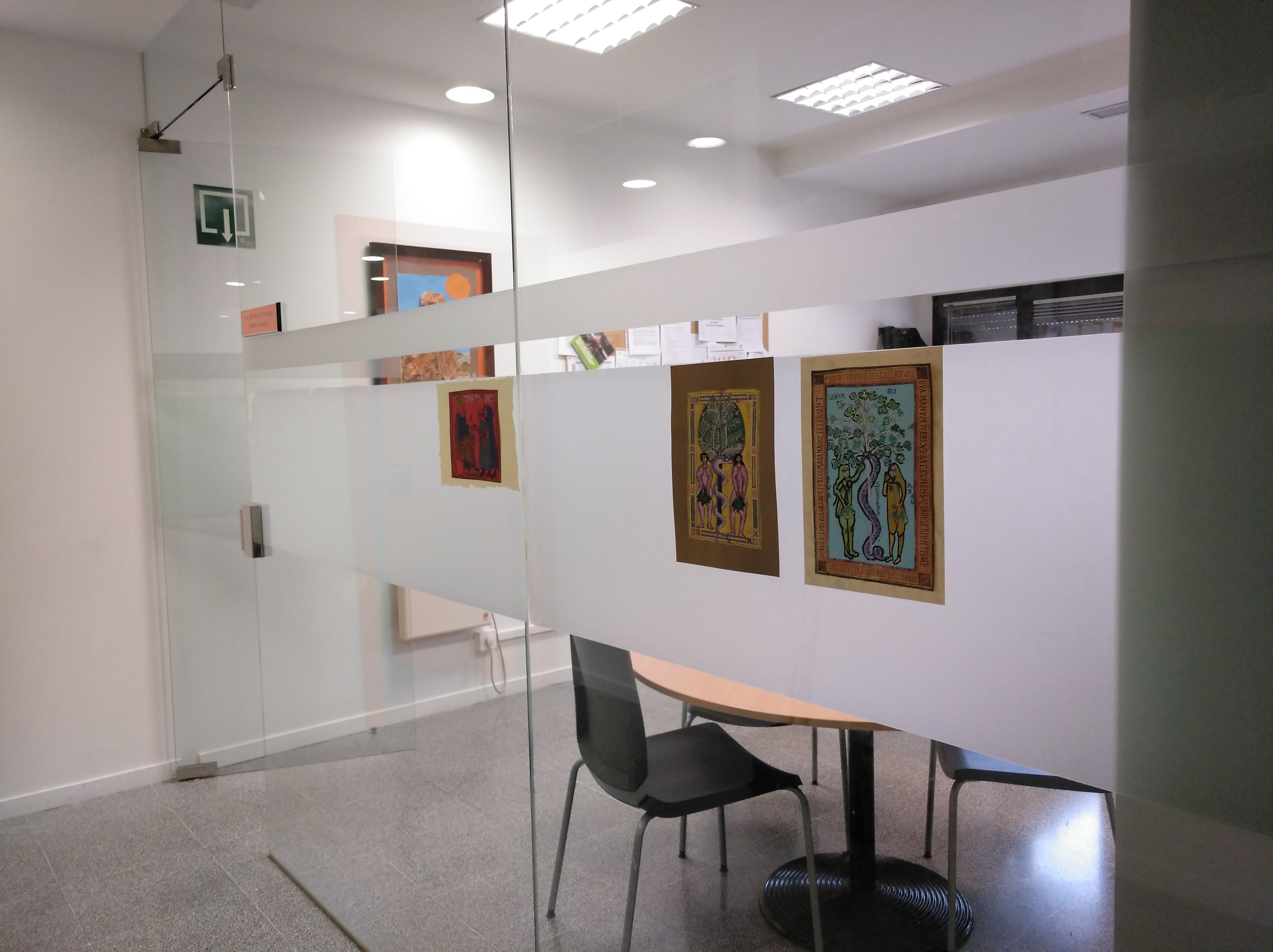 Los dibujos pueden verse expuestos en el pasillo de dirección.